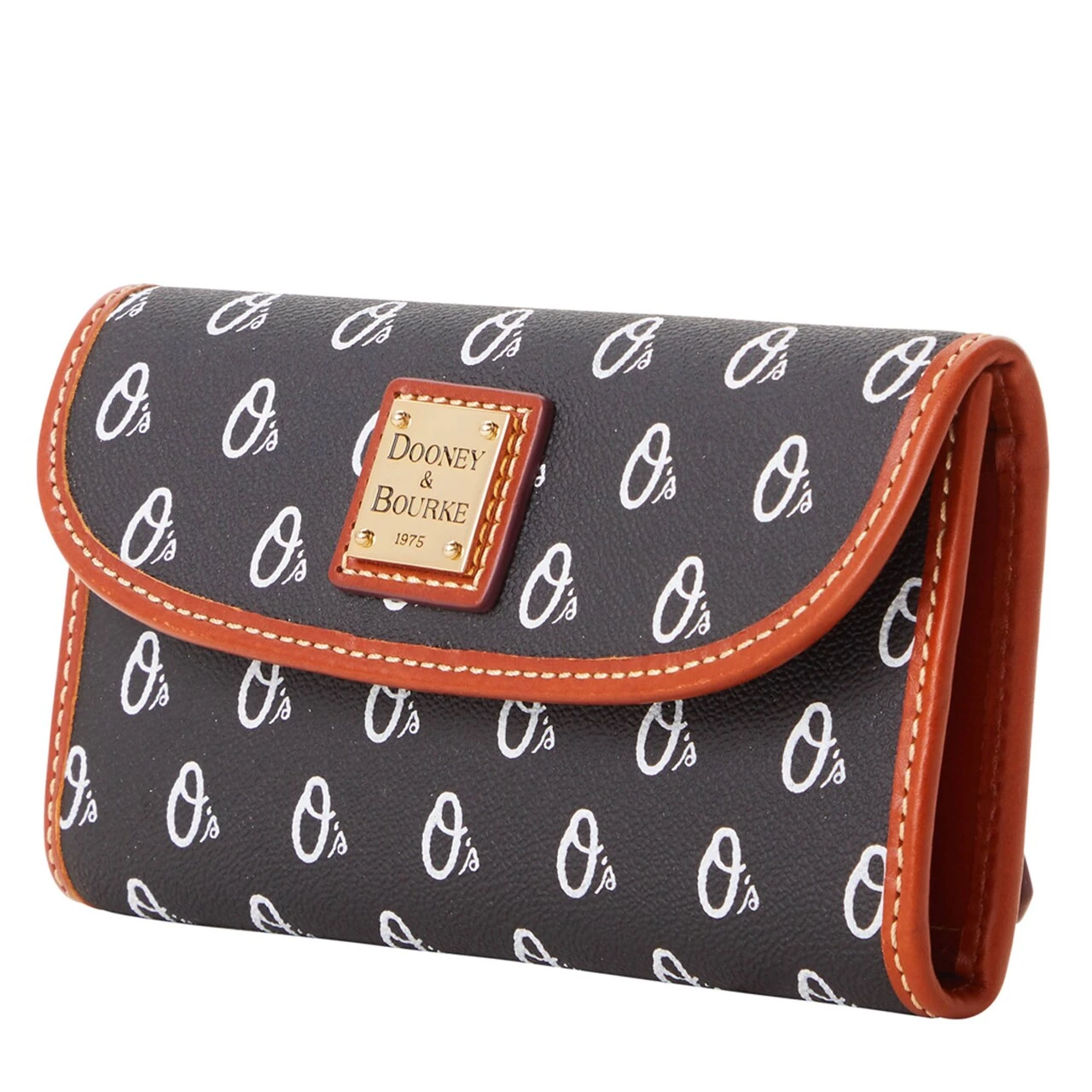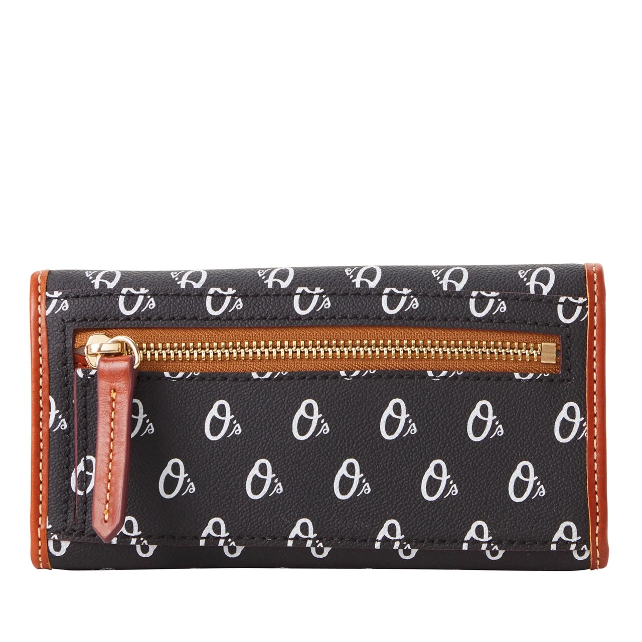 Take your love for the Baltimore Orioles with you on the go with this Signature Continental clutch from Dooney & Bourke. It features a medley of pockets and card slots to carry your necessities as you celebrate your squad. Plus, everyone will know which MLB team you root for thanks to the Baltimore Orioles logo featured all over this accessory.