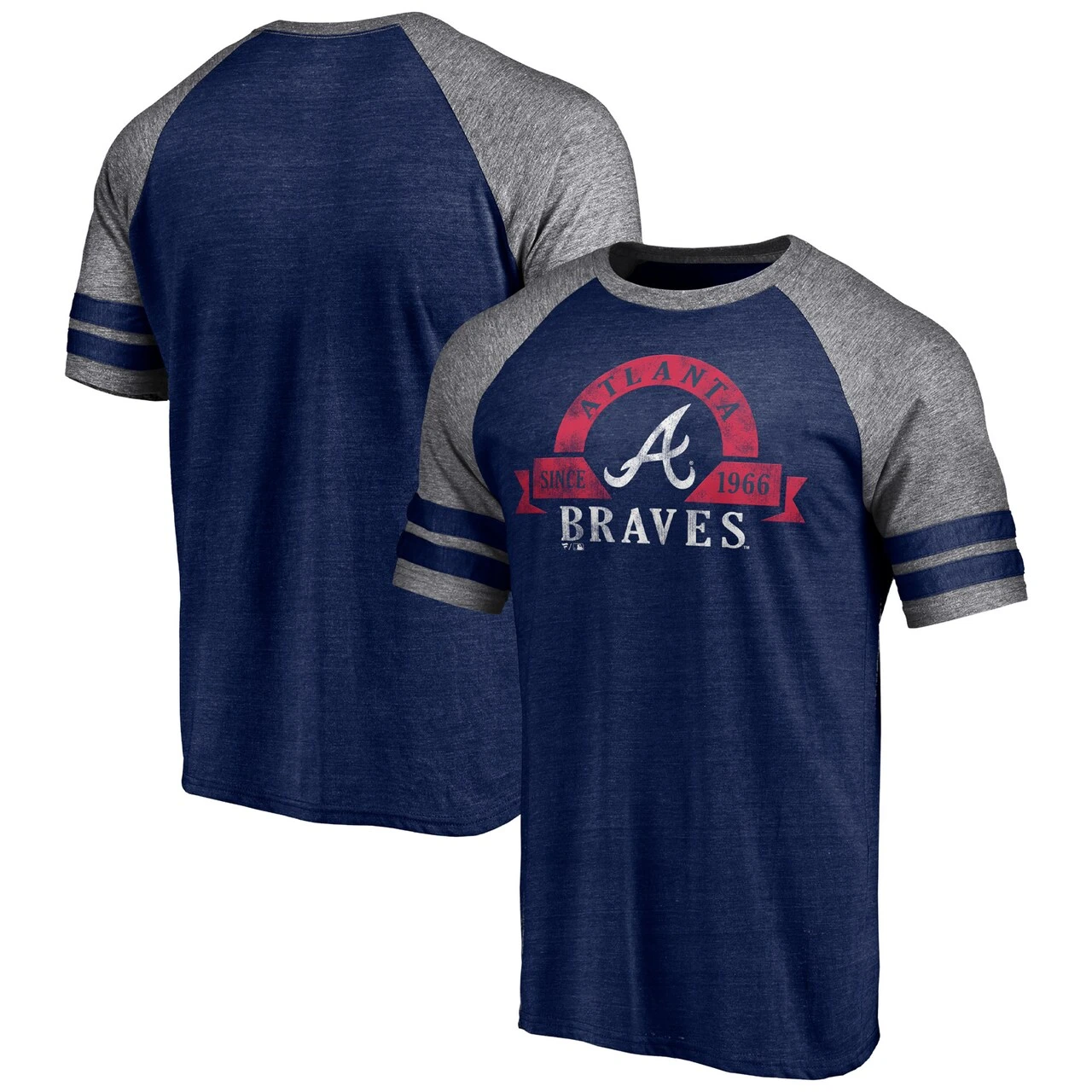 Be the first to review “Men’s Atlanta Braves Fanatics Branded Heather Navy Utility Two-Stripe Raglan Tri-Blend T-Shirt” Cancel reply