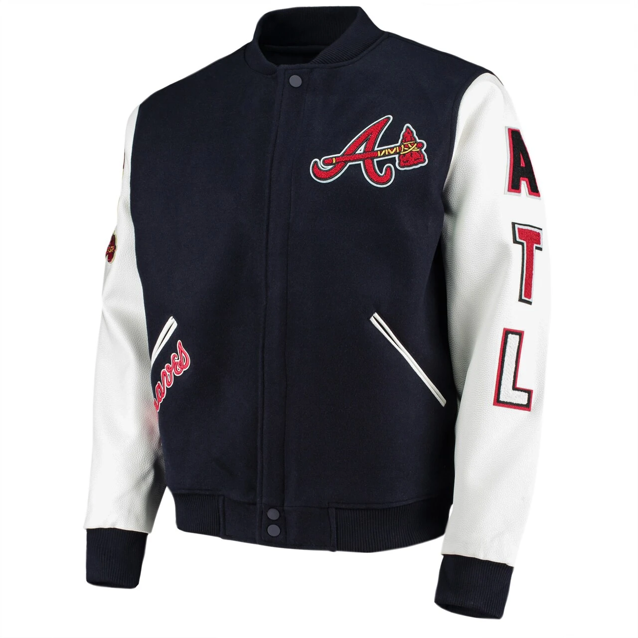 Make a strong statement about your Atlanta Braves fandom by sporting this Varsity Logo Jacket from Pro Standard. The full-zip design features sleek-looking sleeves, soft quilted lining and detailed Atlanta Braves appliques. There are also multiple pockets for keeping your essentials close at hand.