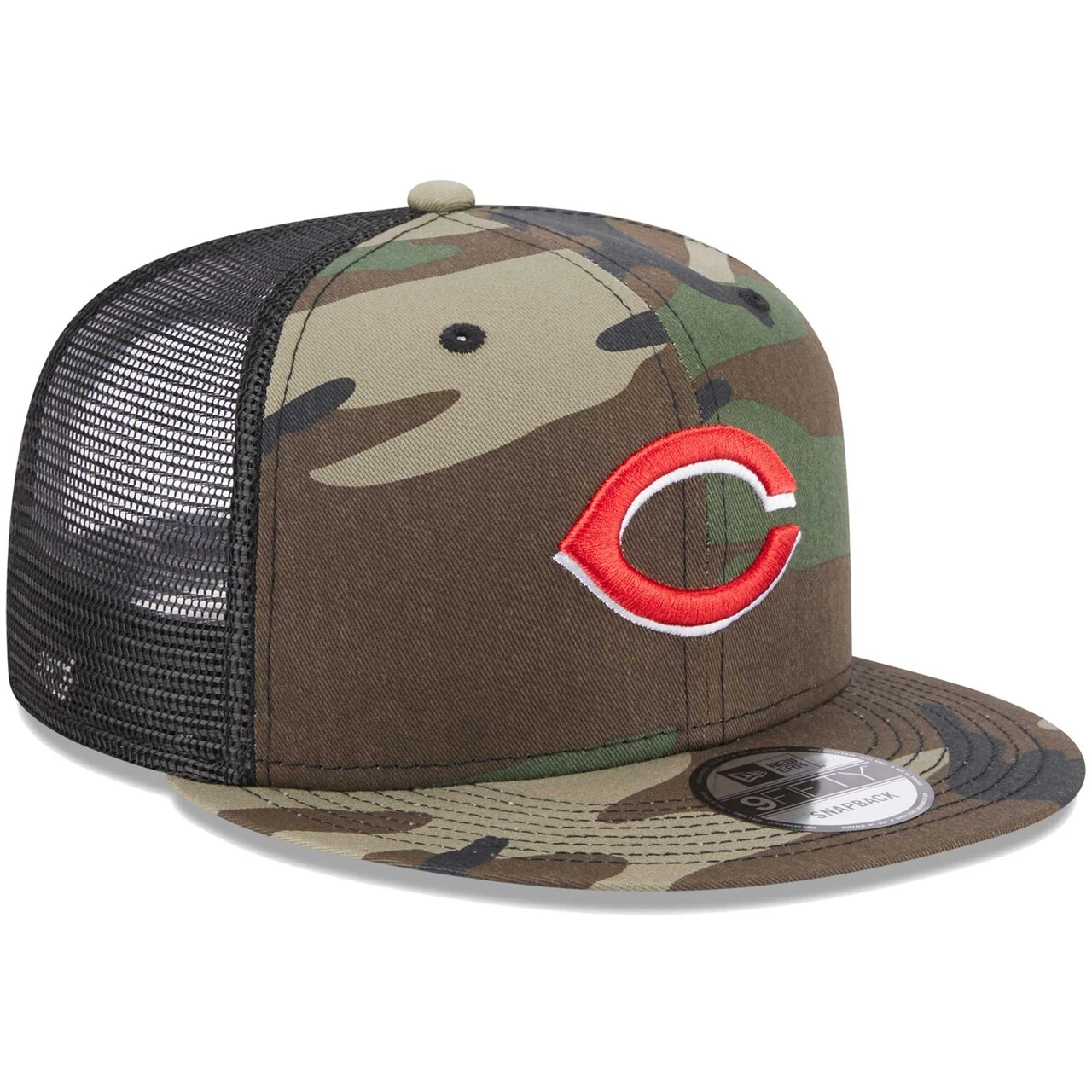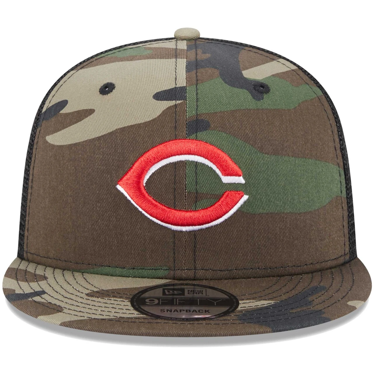 Add a stylish piece of Cincinnati Reds gear to your rotation by picking up this 9FIFTY snapback hat from New Era. It features the club’s unmistakable logo embroidered on the front sitting on top of a camo design, giving this cap a striking look that you’ll be sure to love. The mesh mid and rear panels allow the breeze to flow through and keep your head cool and dry while you cheer the Cincinnati Reds on to victory.