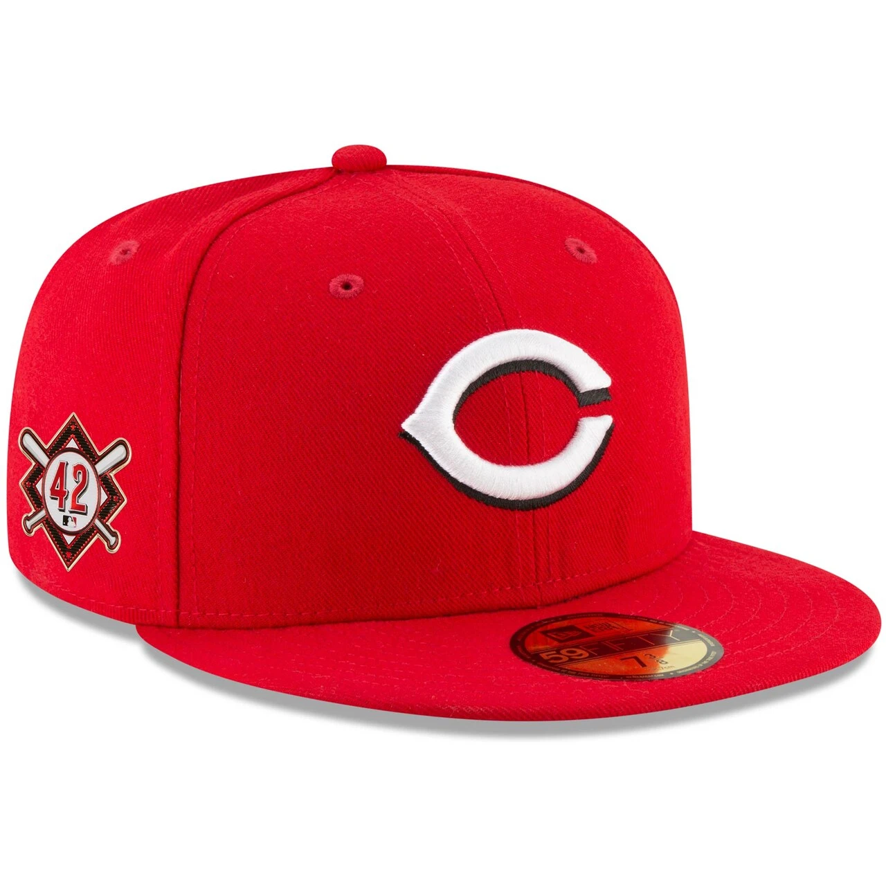 Celebrate Jackie Robinson and the incredible impact he had on the Major Leagues with this Jackie Robinson Day 59FIFTY Cincinnati Reds fitted hat from New Era. With a side patch featuring Jackie Robinson’s number and crisp Cincinnati Reds graphics, this hat is a perfect celebration of the Hall of Famer and your favorite team.