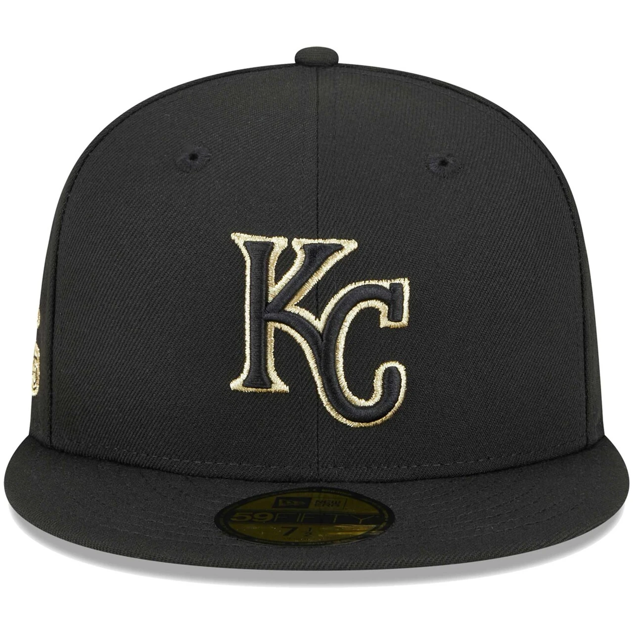 Celebrate an important day in Kansas City Royals history while elevating your style with this New Era 59FIFTY fitted hat. Constructed with a flat bill and high crown, this cap can elevate any look you put together on game day. The metallic Kansas City Royals embroidery on the front and side panels shines a light on your unwavering devotion.