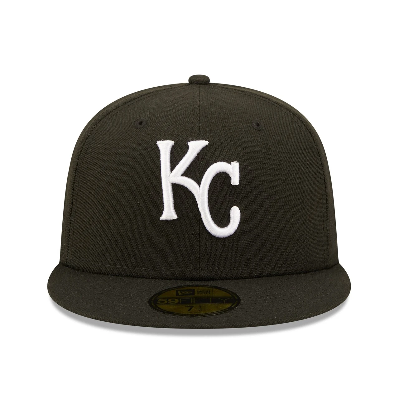 Add a classic touch to your Kansas City Royals collection with this Black and White 59FIFTY fitted hat from New Era. Along with a high crown, it offers a structured construction to add some street-ready style to your fandom. Plus, it features spirited Kansas City Royals graphics in the same shade as the cap itself to further elevate any look you put together.