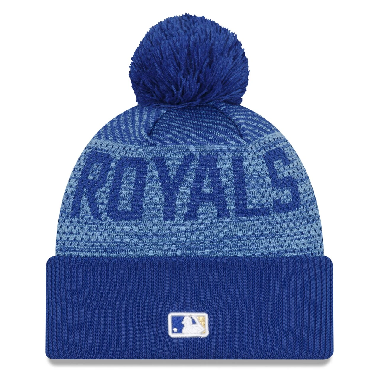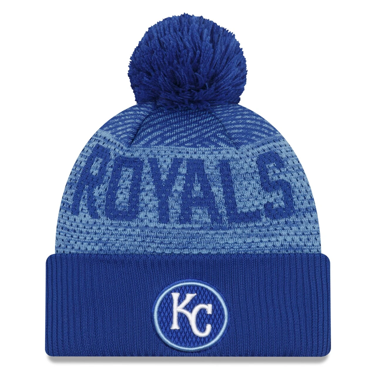 This Kansas City Royals Authentic Collection Sport hat from New Era features a wordmark on either side, a team applique on the cuff and an MLB Batterman logo on the other. This knit cap is topped with a stylish, eye-catching pom. Keep your head warm and toasty when you add this headwear to your Kansas City Royals collection.