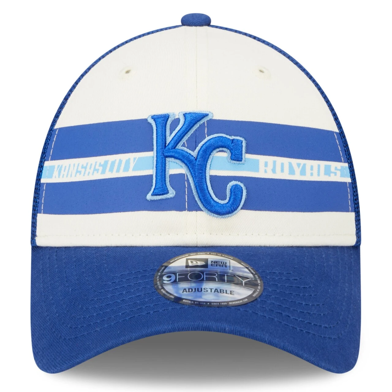 This Team Stripe Trucker 9FORTY snapback hat from New Era is the perfect combination of classic headwear and Kansas City Royals pride. Along with a mid-crown design for a deeper, more comfortable fit, this cap’s mesh paneling offers added breathability. Best of all, the embroidered Kansas City Royals graphics and tasteful stripes provide a timeless spirit when you want to top things off.