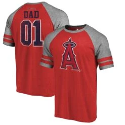 Get this awesome Los Angeles Angels Greatest Dad Two Stripe raglan tri-blend T-shirt from Fanatics Branded and show your dad that he is the best!