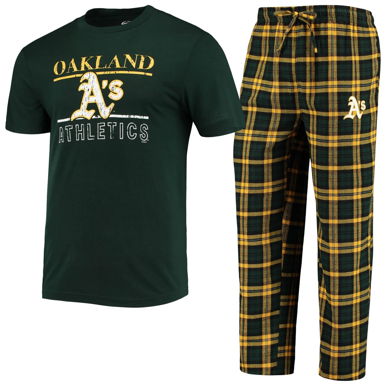 Rest up for the next Oakland Athletics win in this Lodge sleep set from Concepts Sport. It features Oakland Athletics graphics printed in a distressed design on the T-shirt and an embroidered team logo on the plaid pants. An adjustable waistband also lets you customize the fit for maximum comfort.
