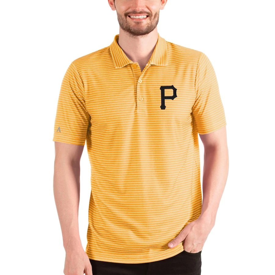Be the first to review “Men’s Pittsburgh Pirates Antigua Gold/White Esteem Polo” Cancel reply