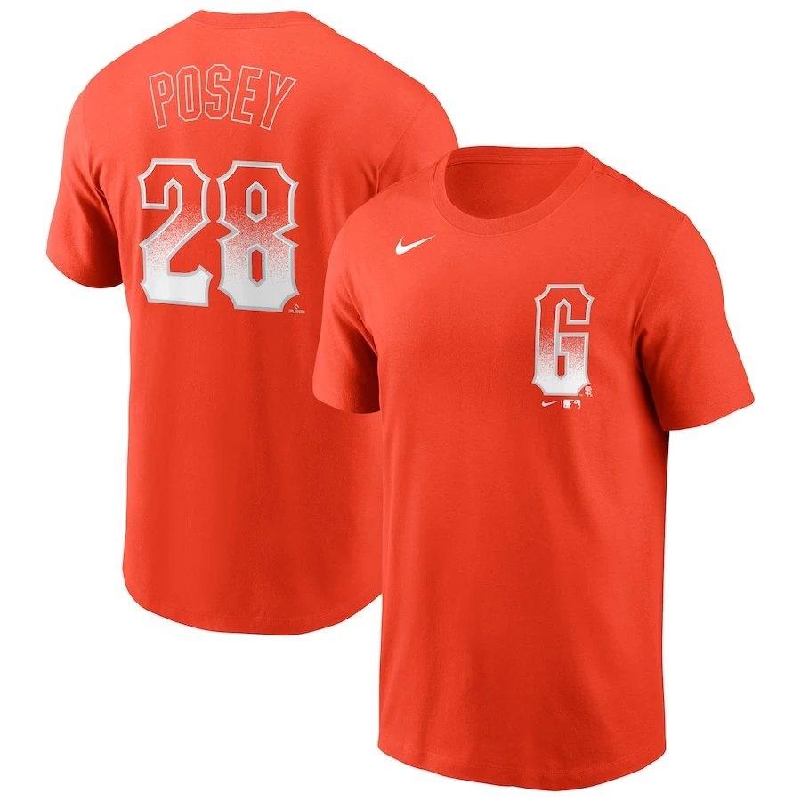 Be the first to review “Men’s San Francisco Giants Buster Posey Nike Orange City Connect Name & Number T-Shirt” Cancel reply