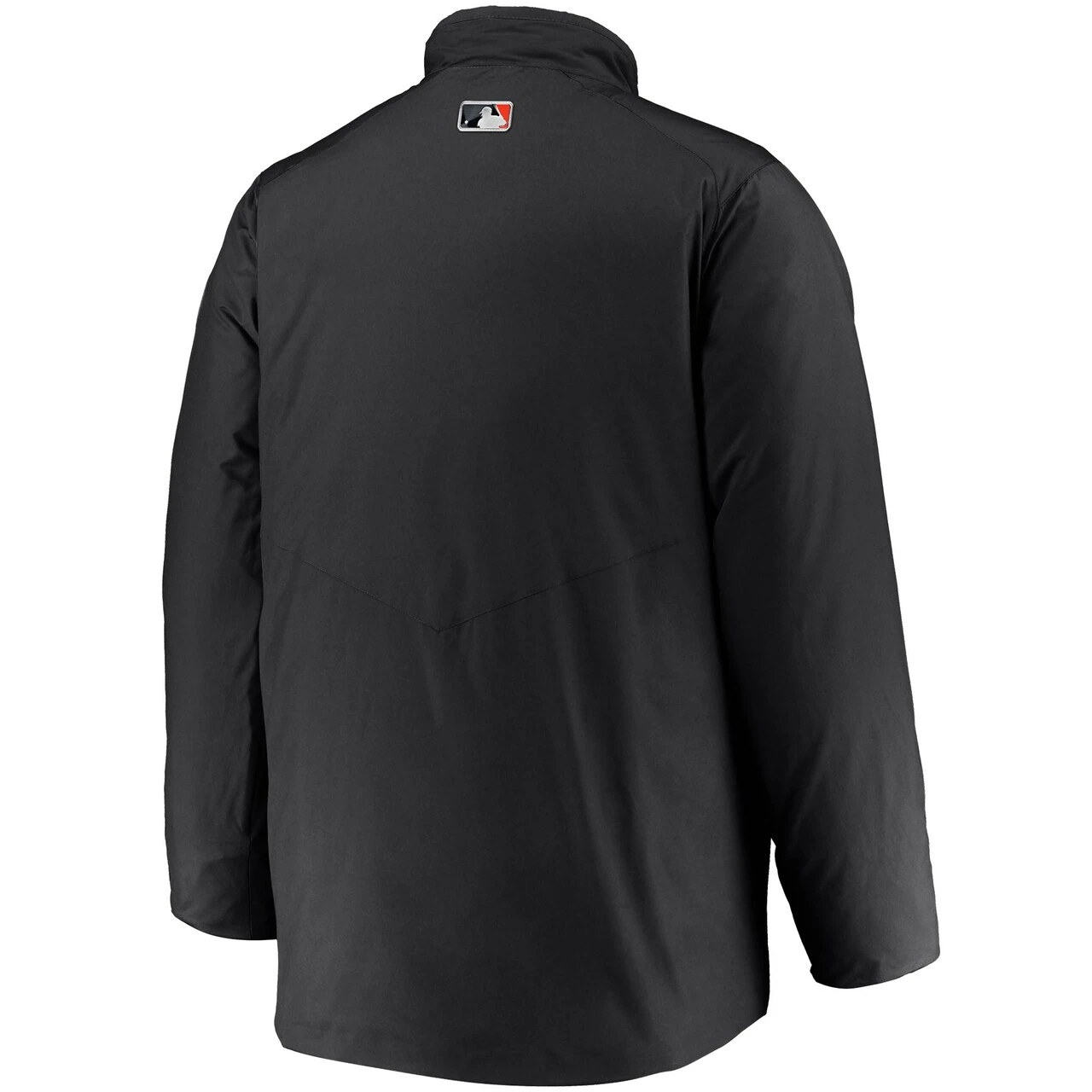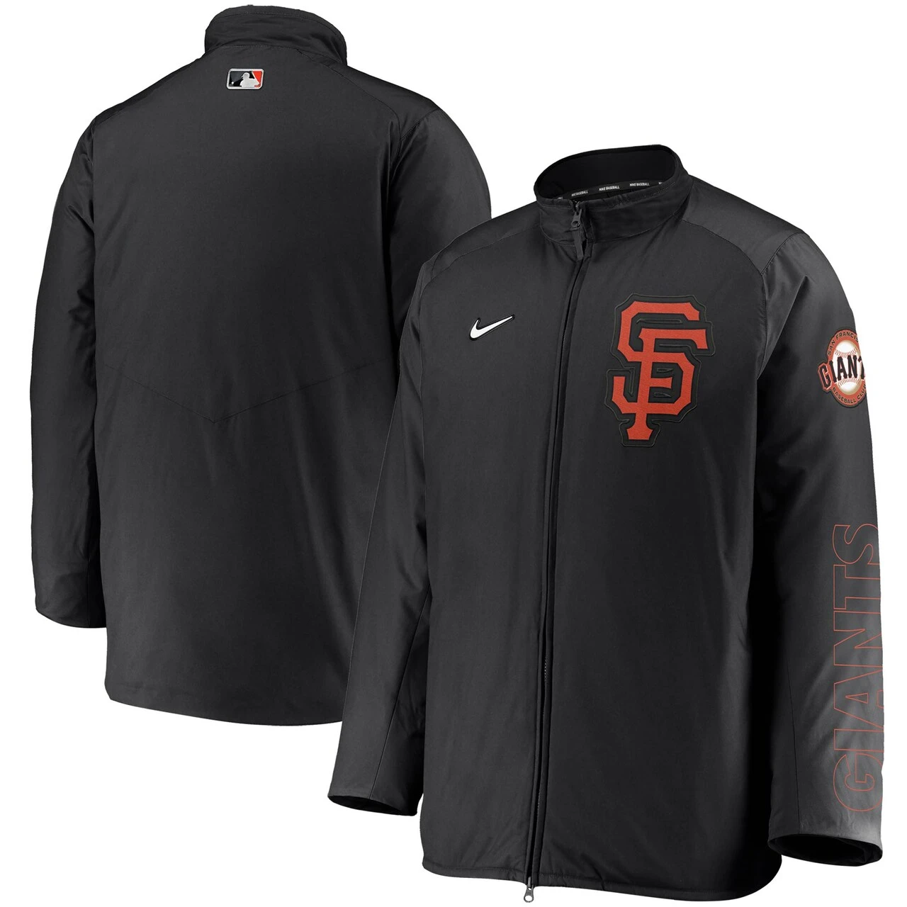 Maintain your status as the ultimate San Francisco Giants fan through the winter months with this Authentic Collection Dugout full-zip jacket from Nike. The elastic cords at the waist and cuffs keep warmth inside so that you can maintain your comfort, and the stellar San Francisco Giants-inspired design on the exterior is just what you need to proclaim your allegiance to your squad.