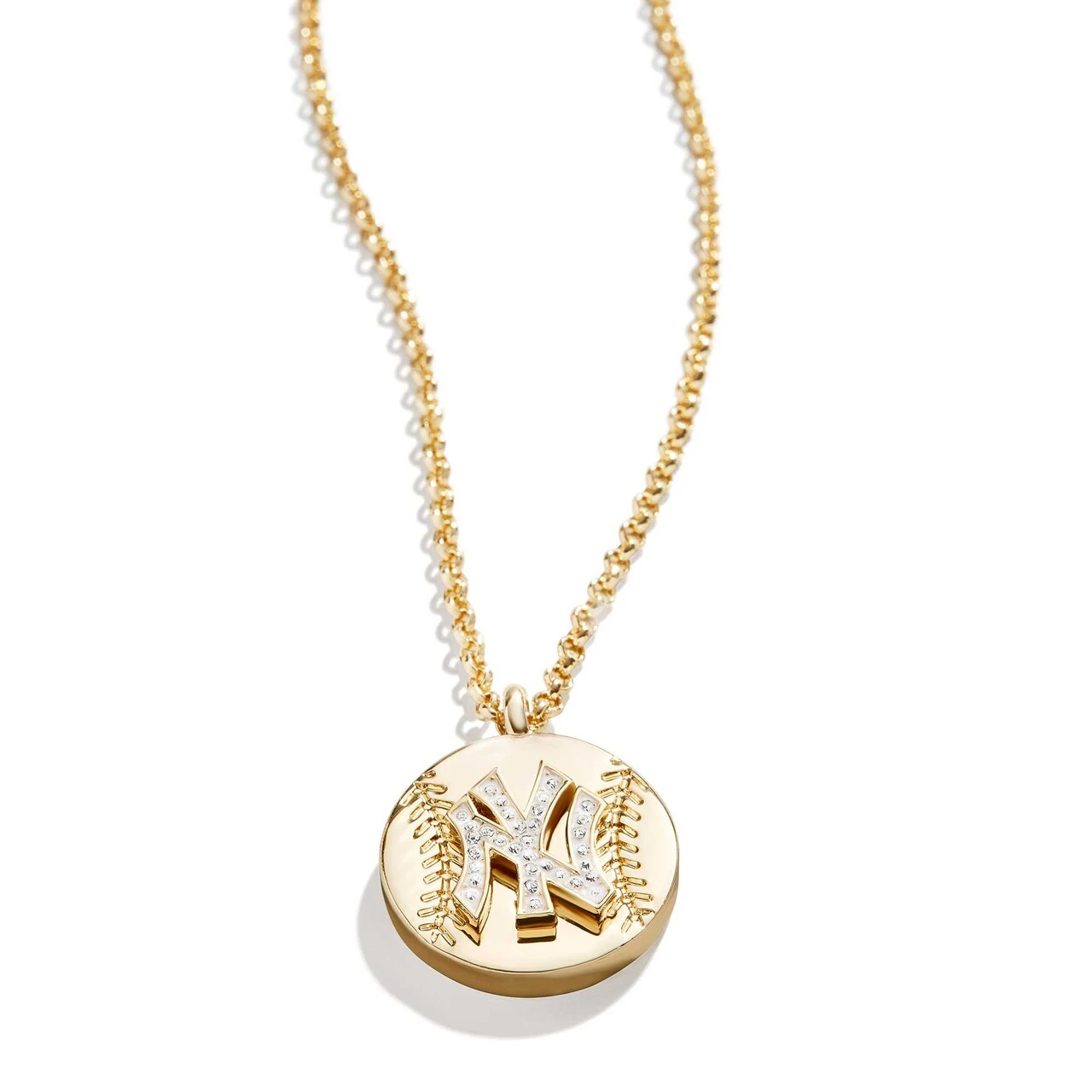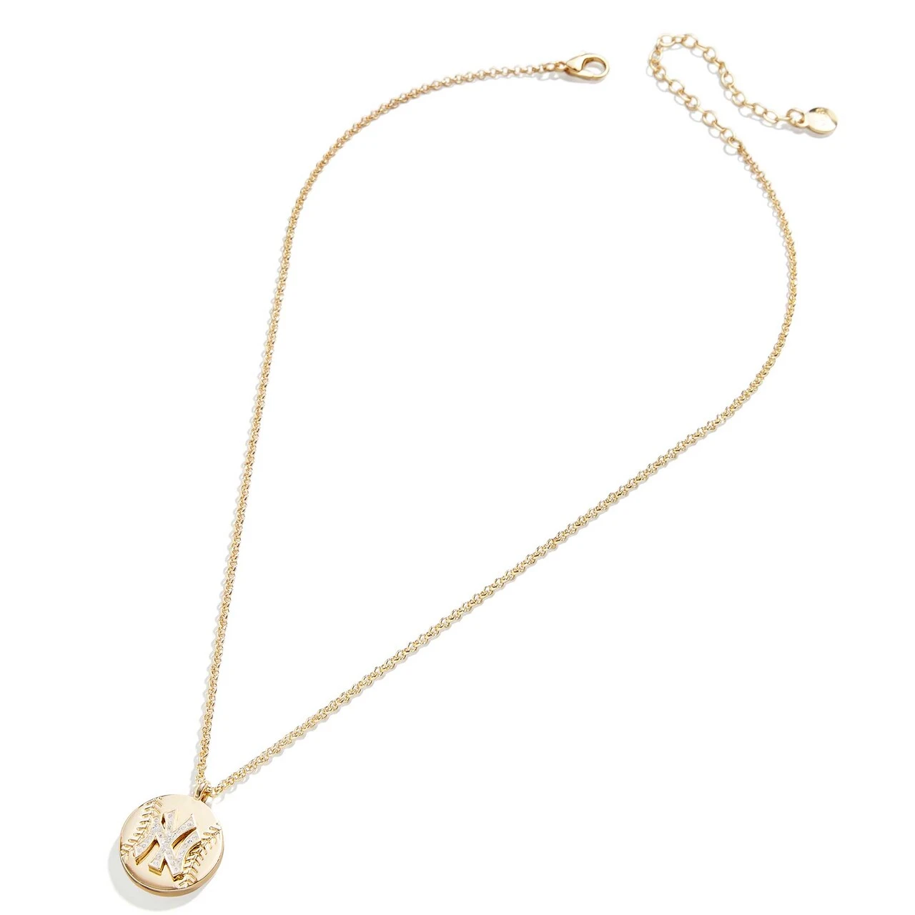 Show off which MLB club is close to your heart with this Pendant necklace from BaubleBar. It features the New York Yankees logo made out of glass stones in a pave setting. A lobster claw clasp secures the length at which you prefer to wear this New York Yankees accessory.