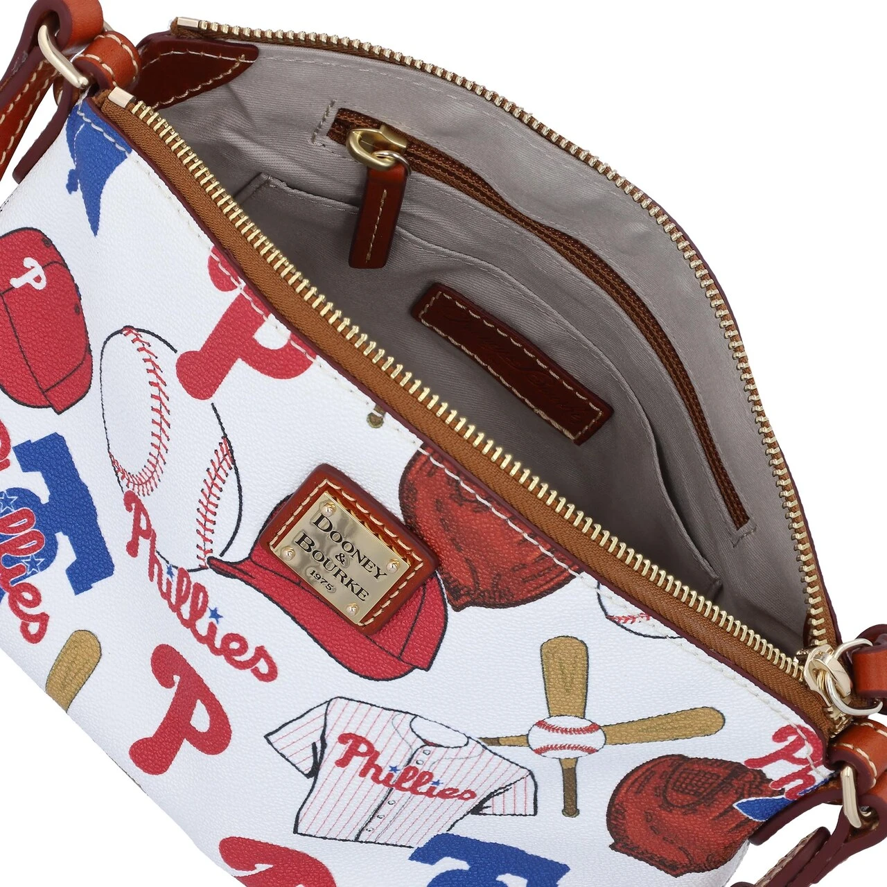 Show off your Philadelphia Phillies pride with this Gameday Suki crossbody purse by Dooney & Bourke. It features printed team details and a separate wristlet. This bag also includes a zippered main compartment with three interior pockets for extra storage as you rep your Philadelphia Phillies.