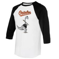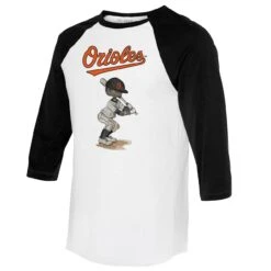Women’s Baltimore Orioles Tiny Turnip White/Black Sundae Helmet 3/4-Sleeve Raglan T-Shirt