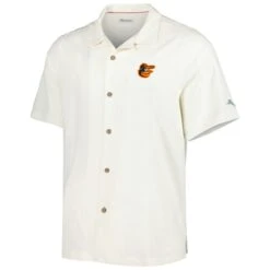 Men’s Baltimore Orioles Tommy Bahama Cream Baseball Camp Button-Up Shirt