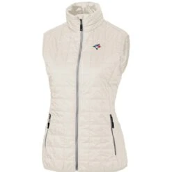 Women’s Toronto Blue Jays Cutter & Buck Cream Rainier PrimaLoft Eco Full-Zip Puffer Vest