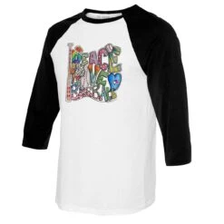 Women’s Toronto Blue Jays Tiny Turnip White/Black Peace Love Baseball 3/4-Sleeve Raglan T-Shirt