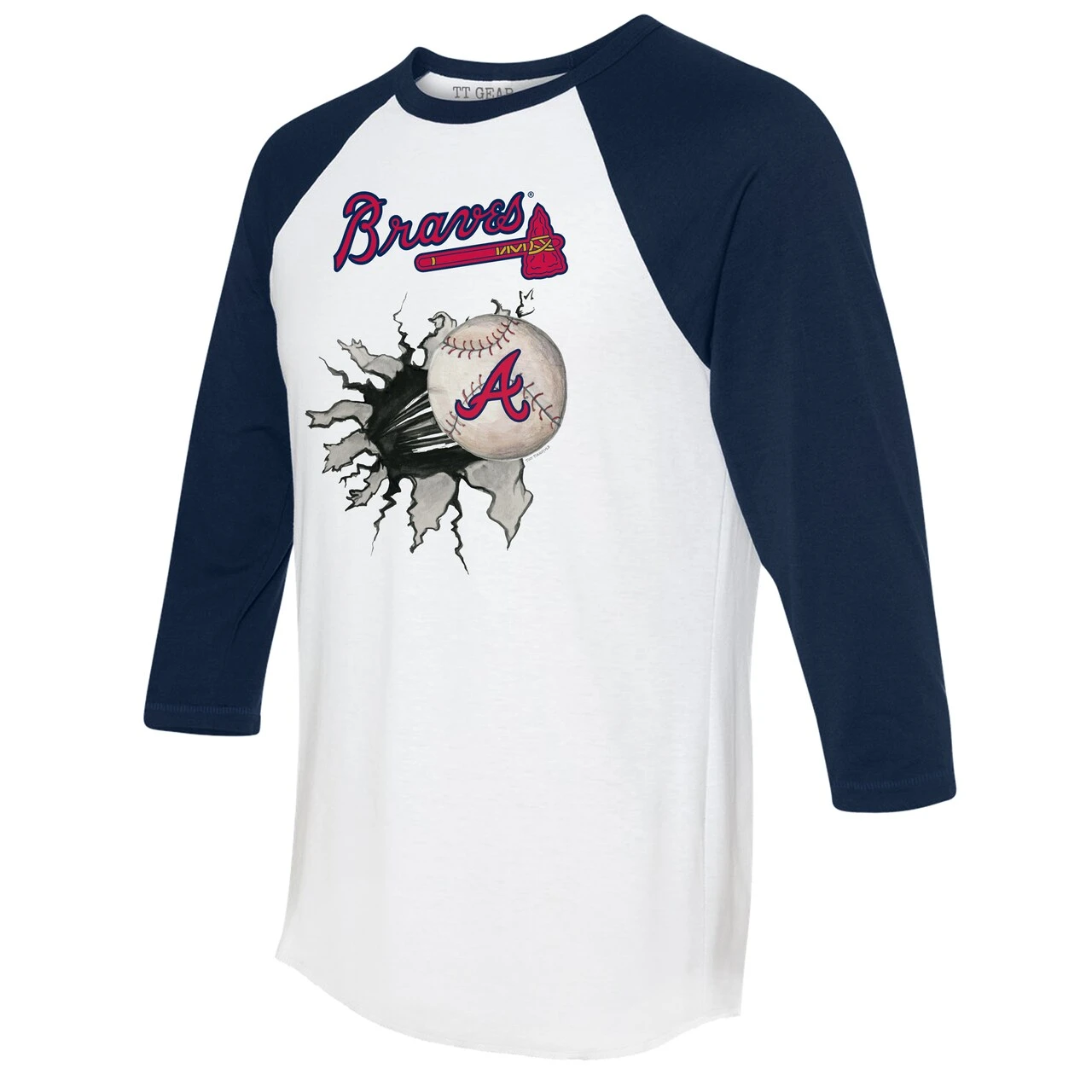 Show off your enthusiasm for Atlanta Braves game day with this Baseball Tear 3/4-Sleeve Raglan T-Shirt from Tiny Turnip. The raglan sleeves feature a wider underarm area that provides more space for movement, and the 3/4-sleeve length gives you an effortlessly cool and casual look. Matching graphics are also available in youth, toddler and infant sizes, so the whole family can have the same spirited look for the next Atlanta Braves game.