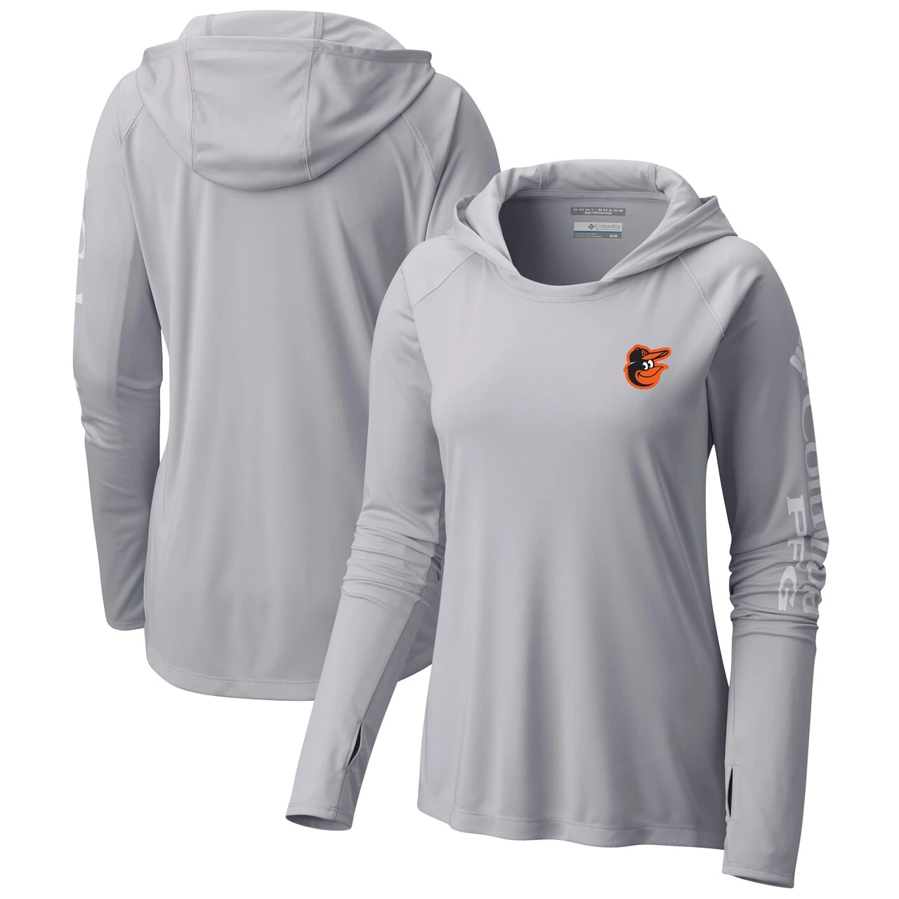 Cheer on the Baltimore Orioles in style by grabbing this Tidal Long Sleeve Hoodie T-Shirt from Columbia. Omni-Shade technology carries UPF 50 sun protection to shield from harmful rays, while Omni-Wick technology evaporates sweat-keeping you fresh while you’re on the go. Heat-sealed Baltimore Orioles graphics complete this stylish hoodie T-shirt, making it a comfortable game day option.