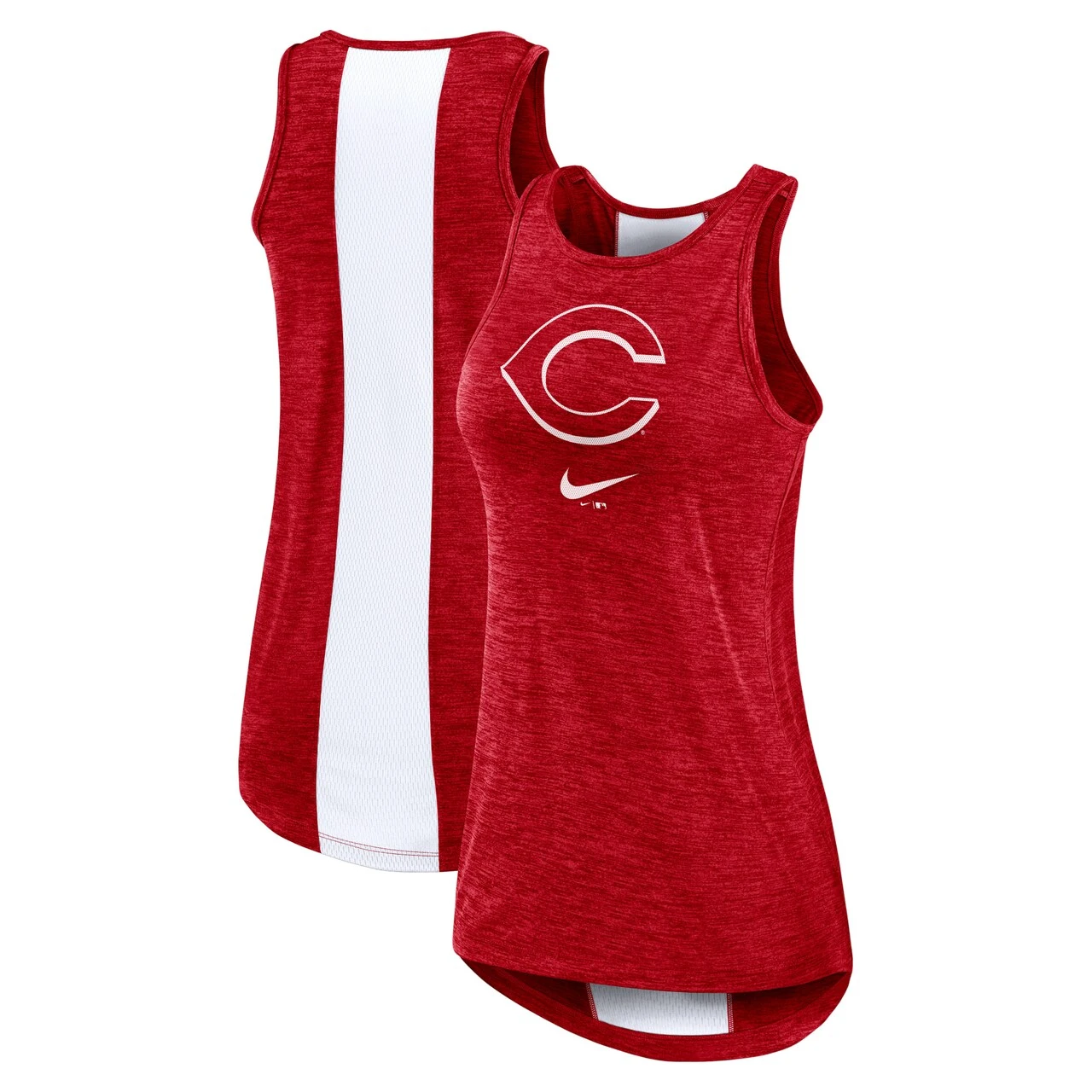 When temperatures rise, keep cool in this Cincinnati Reds Right Mix High Neck tank top from Nike. Designed with moisture-wicking Dri-FIT technology, it features breathable mesh fabric on the back and a rounded hem for a more comfortable fit. Plus, an eye-catching pattern draws attention to the Cincinnati Reds graphics.
