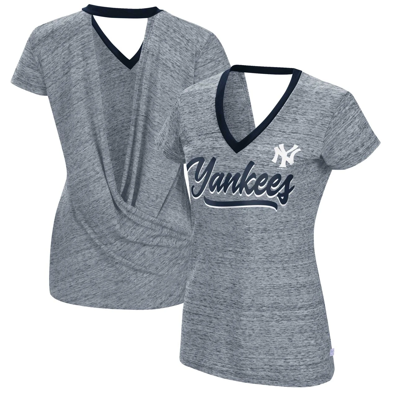 Represent the New York Yankees in style by adding this Halftime T-shirt from Touch to your rotation. The open wrap back detail and V-neck make this tee the most stylish option to represent your beloved squad. Bold New York Yankees graphics across the front ensure you’ll be ready to cheer the New York Yankees on to victory on game day.