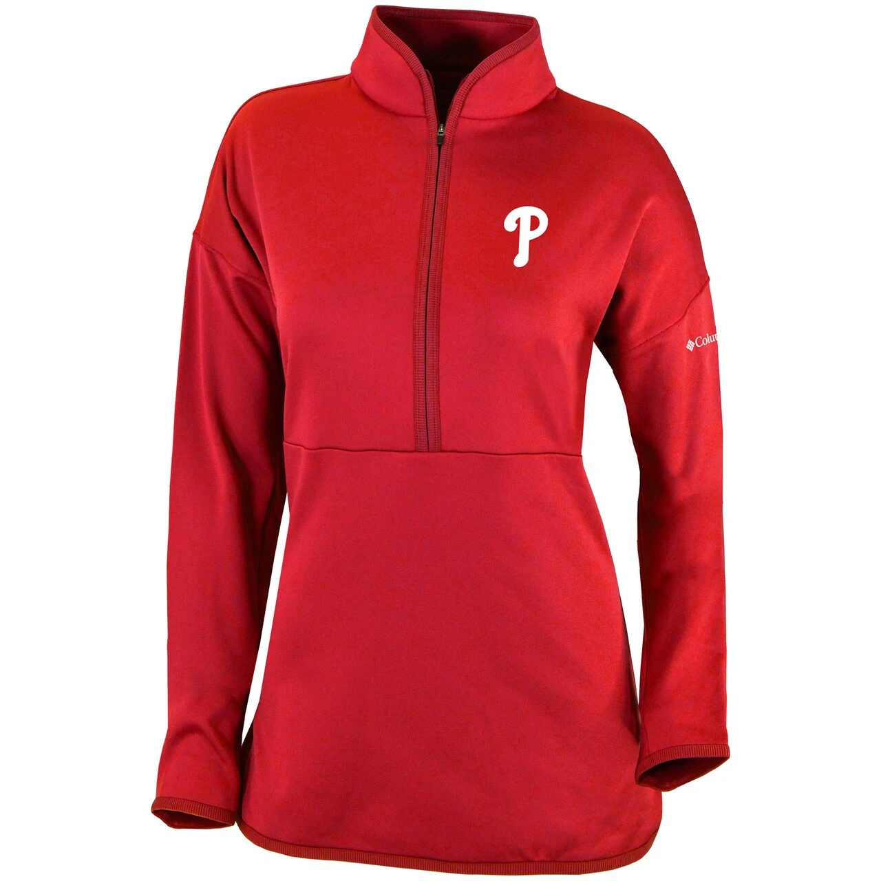 Upgrade your Philadelphia Phillies wardrobe when you wear this Go For It Half-Zip Pullover Top from Columbia at the next game. This top is the perfect layering option as the long sleeve design protects you from chillier weather, while the Omni-Wick technology wicks away moisture to keep you comfortable. It features heat-sealed Philadelphia Phillies graphics so no one will be able to question where your allegiance lies.