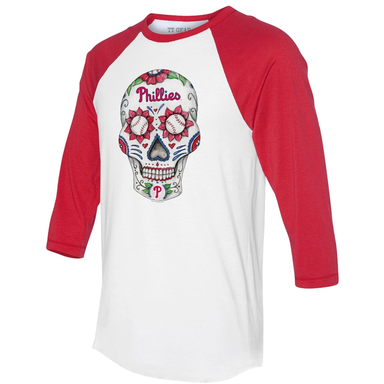 Show off your enthusiasm for Philadelphia Phillies game day with this Sugar Skull 3/4-Sleeve Raglan T-Shirt from Tiny Turnip. The raglan sleeves feature a wider underarm area that provides more space for movement, and the 3/4-sleeve length gives you an effortlessly cool and casual look. Matching graphics are also available in youth, toddler and infant sizes, so the whole family can have the same spirited look for the next Philadelphia Phillies game.