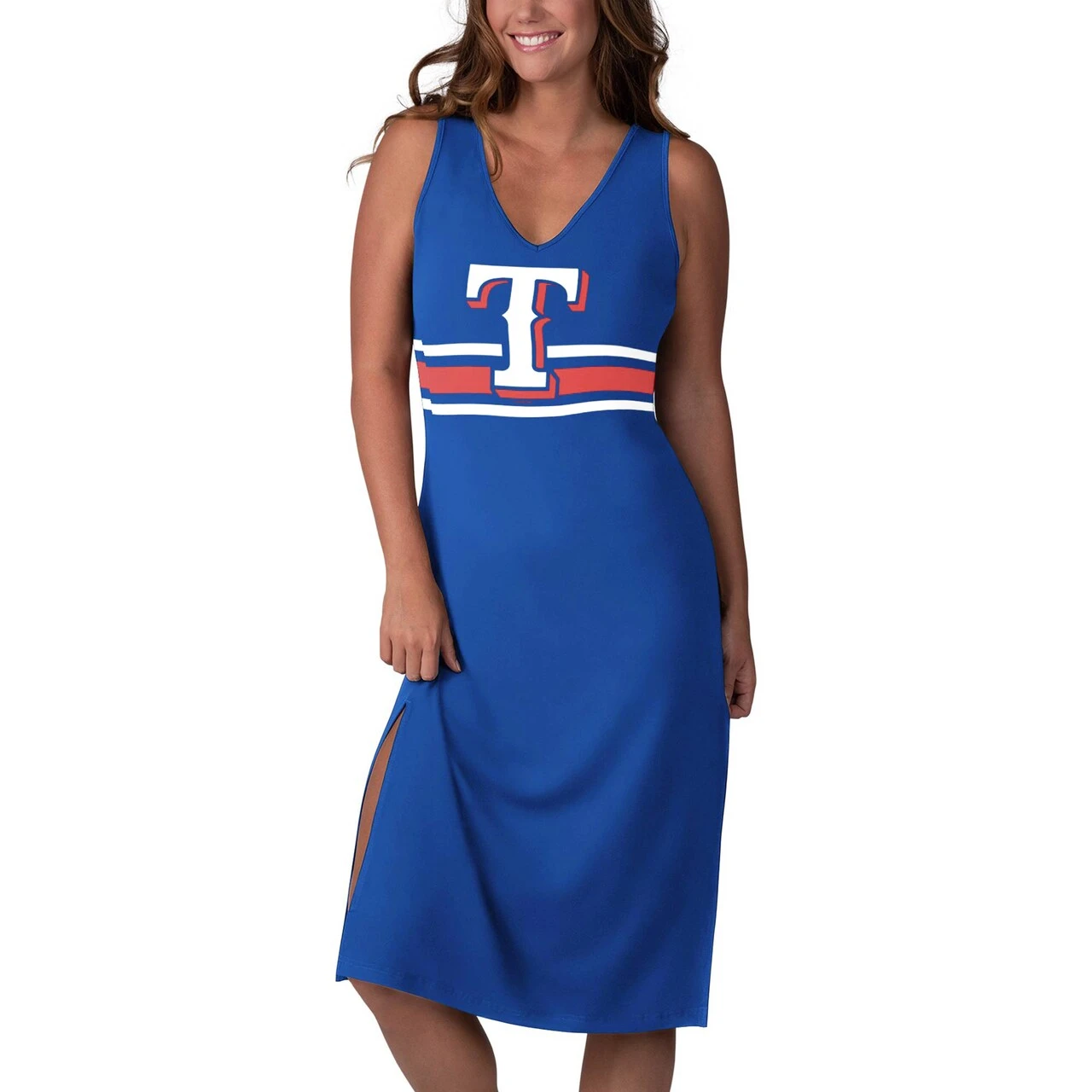 You love to dress up for the Texas Rangers watch parties. Instead of your usual t-shirt, change it up with this fashionable Texas Rangers Opening Day maxi dress from G-III 4Her by Carl Banks. Comfortable and stylish, this dress has superb graphics and a cool overall design that makes it a great part of your wardrobe. Pair it with a team hat and your favorite sandals to create an outfit like no other.