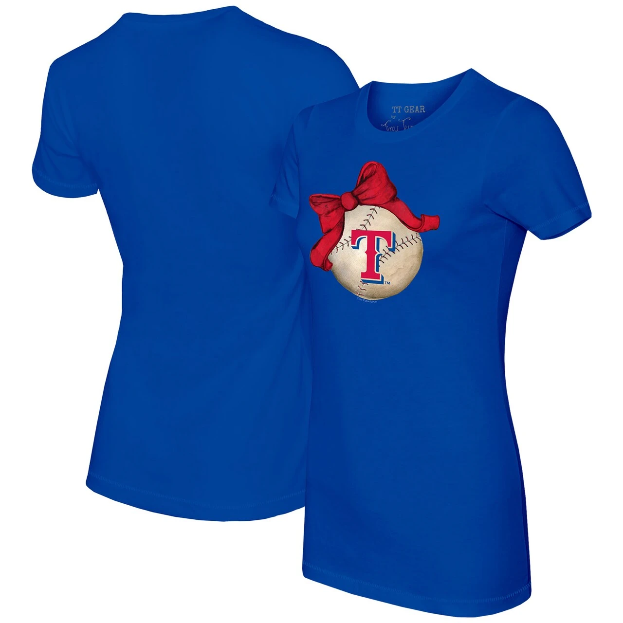 Be the first to review “Women’s Texas Rangers Tiny Turnip Royal Baseball Bow T-Shirt” Cancel reply