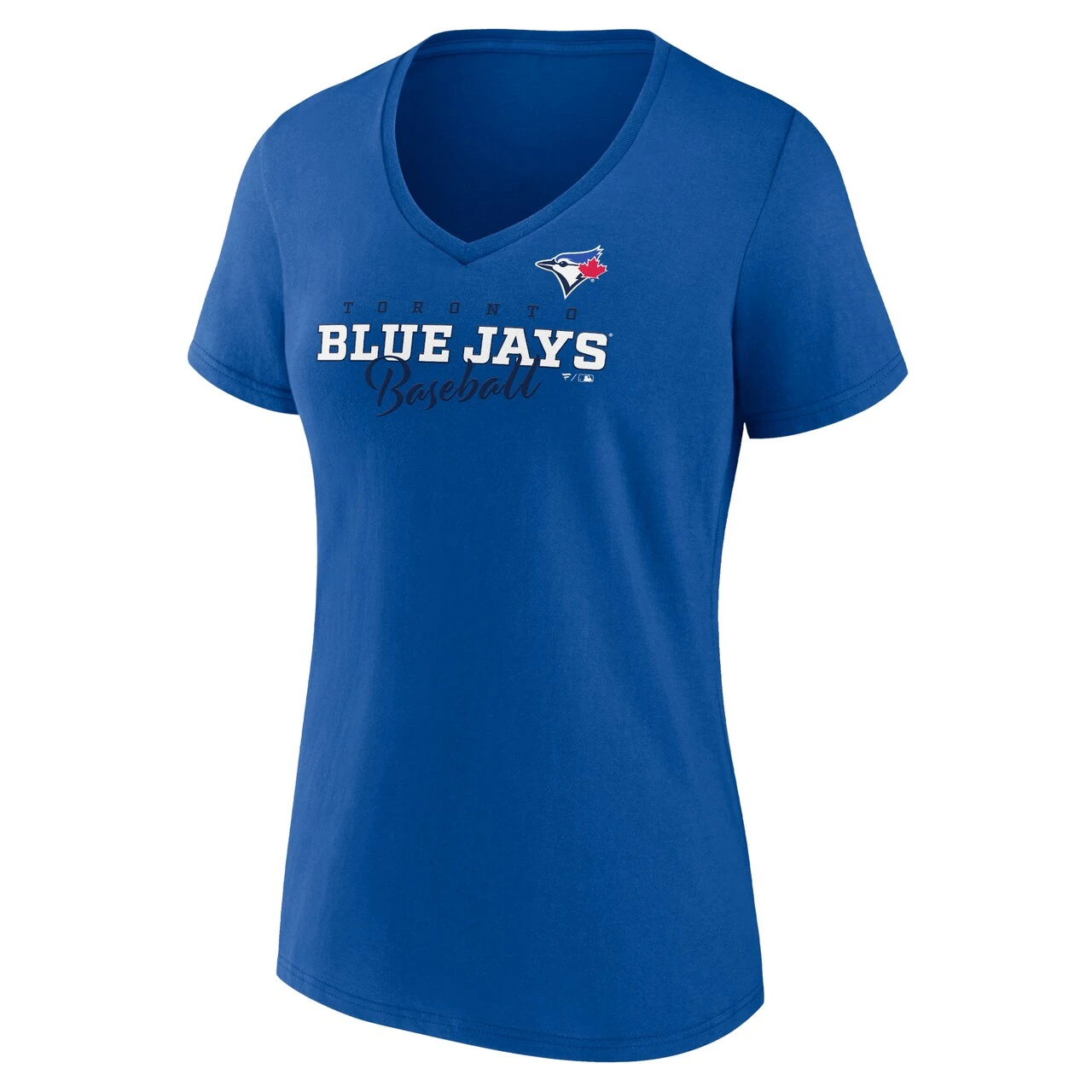 Give any outfit a winning Toronto Blue Jays finish with this Fanatics Branded Back In Business V-Neck T-Shirt. This bold top features a flattering neckline and striking Toronto Blue Jays graphics to highlight your devotion loud and proud. A timeless design and durable material bring long-lasting style to your outfit, perfect to keep you comfortable whether you’re watching from the stands or at home.
