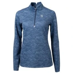 Women’s New York Yankees Cutter & Buck Navy Traverse Camo Print Stretch Quarter-Zip Pullover Top