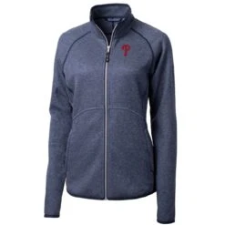 Women’s Philadelphia Phillies Cutter & Buck Heathered Navy Mainsail Sweater-Knit Full-Zip Jacket