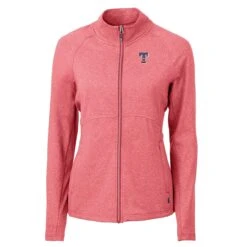 Women’s Texas Rangers Cutter & Buck Heather Red Adapt Eco Knit Heather Recycled Full-Zip Top