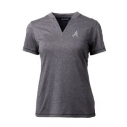 Women’s Atlanta Braves Cutter & Buck Heather Charcoal DryTec Forge Stretch V-Neck Blade Top