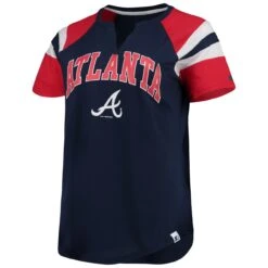 Women’s Atlanta Braves Tiny Turnip White/Navy Military Star 3/4-Sleeve Raglan T-Shirt