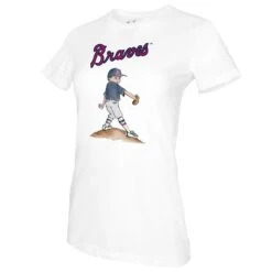 Women’s Atlanta Braves Tiny Turnip White Base Stripe T-Shirt