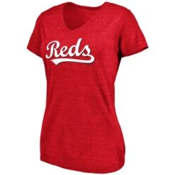 Women’s Cincinnati Reds Fanatics Branded Heathered Wordmark Tri-Blend V-Neck T-Shirt