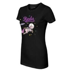 Women’s Cincinnati Reds Tiny Turnip Black Space Unicorn T-Shirt